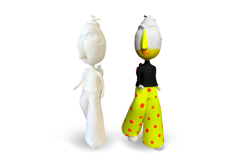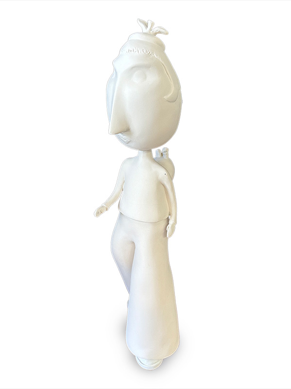 This piece is a collaboration between artist Wendy Costa and myself. Wendy comes up with the character. I then create the original sculpture. Next, the piece goes back to Wendy to work her magic and paint it.